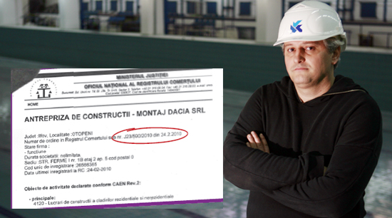 FAPTUL NR. 3. Gazeta află că Dacia SRL a fost înfiinţată în februarie 2010 şi a cîştigat contractul cu statul în martie! Confirmarea vine de la Registrul Comerţului: 24 februarie! Obiectul de activitate? „Lucrări de consolidare a clădirilor”. Vă amintiţi, probabil. Una dintre firmele implicate în „2 Mai” s-a născut cu doar cîteva luni înainte de primirea contractelor. Acum, termenul e mai scurt: s-a ajuns la cîteva zile între fondarea firmei şi momentul în care primeşte bani publici! Diaconu s-a perfecţionat.