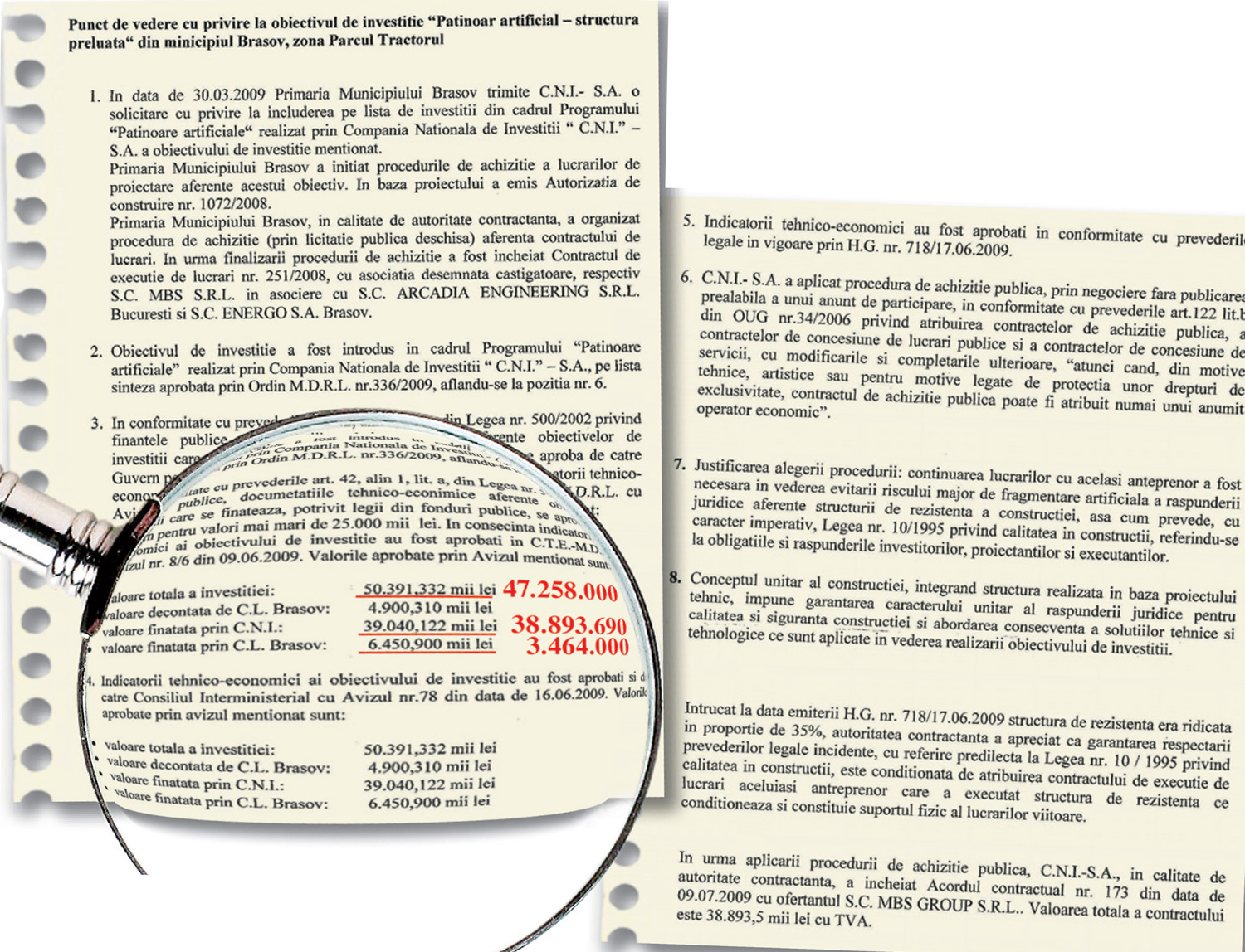 Cifrele patinoarului de la Braşov aşa cum apar ele într-o notă confidenţială
