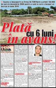 Gazeta a descoperit că firma SC TCM Nord a primit 150.000 de euro în decembrie 2009 pentru o sală la care a început să lucreze în iunie 2010