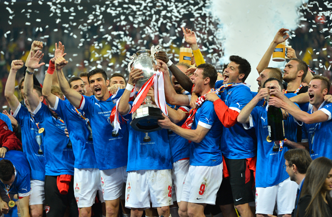 Ai perfecta dreptate! Sunt dinamovist si pot sa spun ca pentru moment nici nu am inteles ce naiba se intampla, ma gandeam ca e vreun protest cu Craiova! Comentatorii vorbeau de bucuria ros-alba si eu vedeam una albastra,bleu mai exact!? O mare prostie acceptata prea usor de federatie si sincer si de jucatorii lui Dinamo! L-am vazut pe M Niculae ca protesta, pana la urma au luat cate un fular sa vada lumea ca Dinamo a castigat Cupa! Inteleg tricouri ale Romaniei, e o competitie nationala, desi nici asta nu e normal, bucuria era ros-alba. Punct.